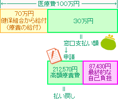 | <例> 本人が入院して1ヵ月の医療費が100万円の場合 | |||||||||||||