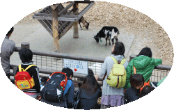 | 途中の赤塚山公園では小動物ともふれあって、子どもたちの元気な歓声がはじけていました。 |