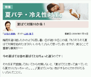 | 今の夏バテに大きく影響するのが「冷房」です。冷房の効いた室内と熱い外との温度差にからだがうまく対処できず、自律神経失調状態になってしまうことです。これは「冷房病」ともいわれています。 冷房病は、からだの冷え、頭痛、肩こり、だるさ、胃腸障害、腰痛、手足のむくみ、不眠、免疫力が落ちてかぜをひきやすくなったり、ホルモンバランスの乱れから月経不順、生理痛、不妊などに発展します。 冷房病は、体力がない人や高齢者に多くみられる症状でしたが、最近では若い人にも多く、これには不健康な生活習慣がかかわっていると考えられています。 |