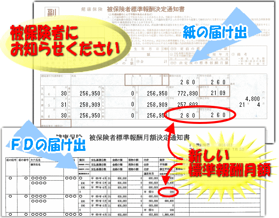 つきましては、9月分(10月分給料からの控除分)から新標準報酬月額が適用されますので、給与明細書などで、被保険者の皆様方にご通知をお願いいたします。
