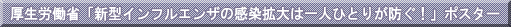 また、新型インフルエンザ対策として国が示している「基本方針」や「ワクチンについてのQ&A」などの情報もご参考にしていただければ幸いに存じます。 もし職場で集団感染した場合、職場閉鎖や事業所の休業など企業経営上、重大な事態を招くことになりますので、1人ひとりが危機管理意識を持ちながら日頃からの予防対策として「手洗い・うがい」や「マスクの着用・咳エチケット」など継続的におこなうなど自己防衛に努めていただくようご周知をお願いします。 |