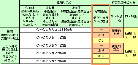 表A 特定保健指導対象者のグループ分け判定基準(特定保健指導階層化) | ||