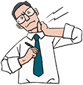 机に向かう姿勢の時、私たちの頭は首の一部の筋肉だけで支えられていますので、仕事中は首にも負担がかかっています。首の筋肉の硬直は、背中や肩のこりとも関係していますので、時々ストレッチをして筋肉を楽にさせましょう。
