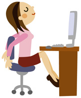 パソコンのモニターが目線より下にあるなど、背中が丸くなりやすい環境になっていませんか?パソコンは、背筋が伸び、頭が肩より前に出過ぎない状態で打てる位置へ。姿勢を正した時に、モニターと目線の高さが同じになるようイスを調整しましょう。