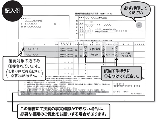 12月5日付でご通知いたしました「被扶養者の資格確認」について「記入例」と「Q&A」を掲載いたしましたので、こちらを参考にして「健康保険被扶養者確認調書」をご記入・押印いただき、お早めに事業所ご担当者様へご提出いただきますようお願いいたします。