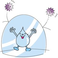 のどの粘膜には線毛という毛のような器官が密生して振動しています。それを粘液が覆い、侵入したウイルスなどの病原体を体外に運び排除します。