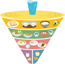 厚生労働省・農林水産省が策定した「食事バランスガイド」では、1日に「何を」「どれだけ」食べたらいいかの目安を、「主食(ごはん、パン、麺)」、「副菜(野菜、きのこ、いも、海藻料理)」、「主菜(肉、魚、卵、大豆料理)」、「牛乳・乳製品」、「果物」の5つに分類して、イラストで表しています。 くわしくは下記ホームページをご覧ください。